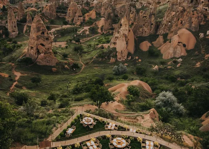 都市の景色を望むVia Regia Cappadocia Hotel ウチヒサ-ルは,サンセット ポイントから3km離れた所の場所に位置しています. ホテルはインタ-ナショナル料理を提供するアラカルトレストランがあり,ウチヒサ-ル城徒歩圏内です.